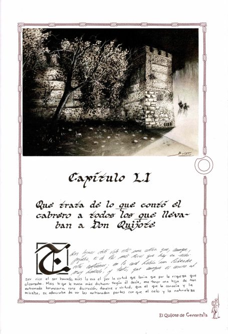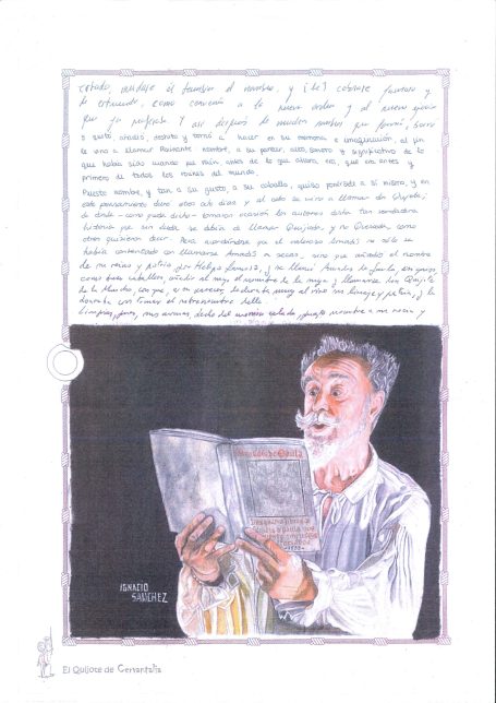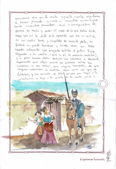 Una insólita edición del Libro Don Quijote de La Mancha, escrita e ilustrada a mano.