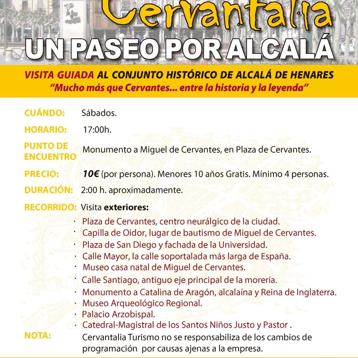 Cervantalia turismo no se responsabiliza de los cambios de programación por causas ajenas a la empresa